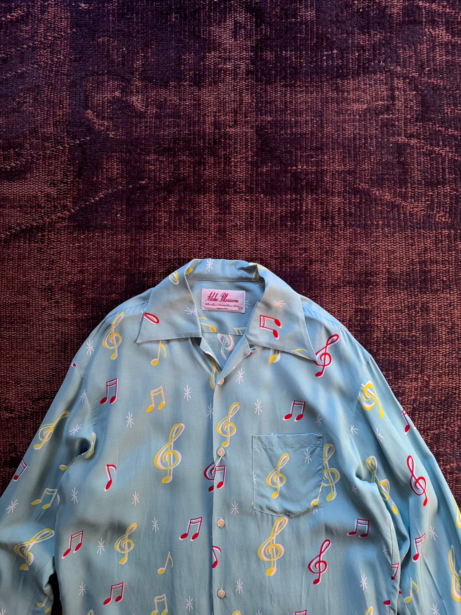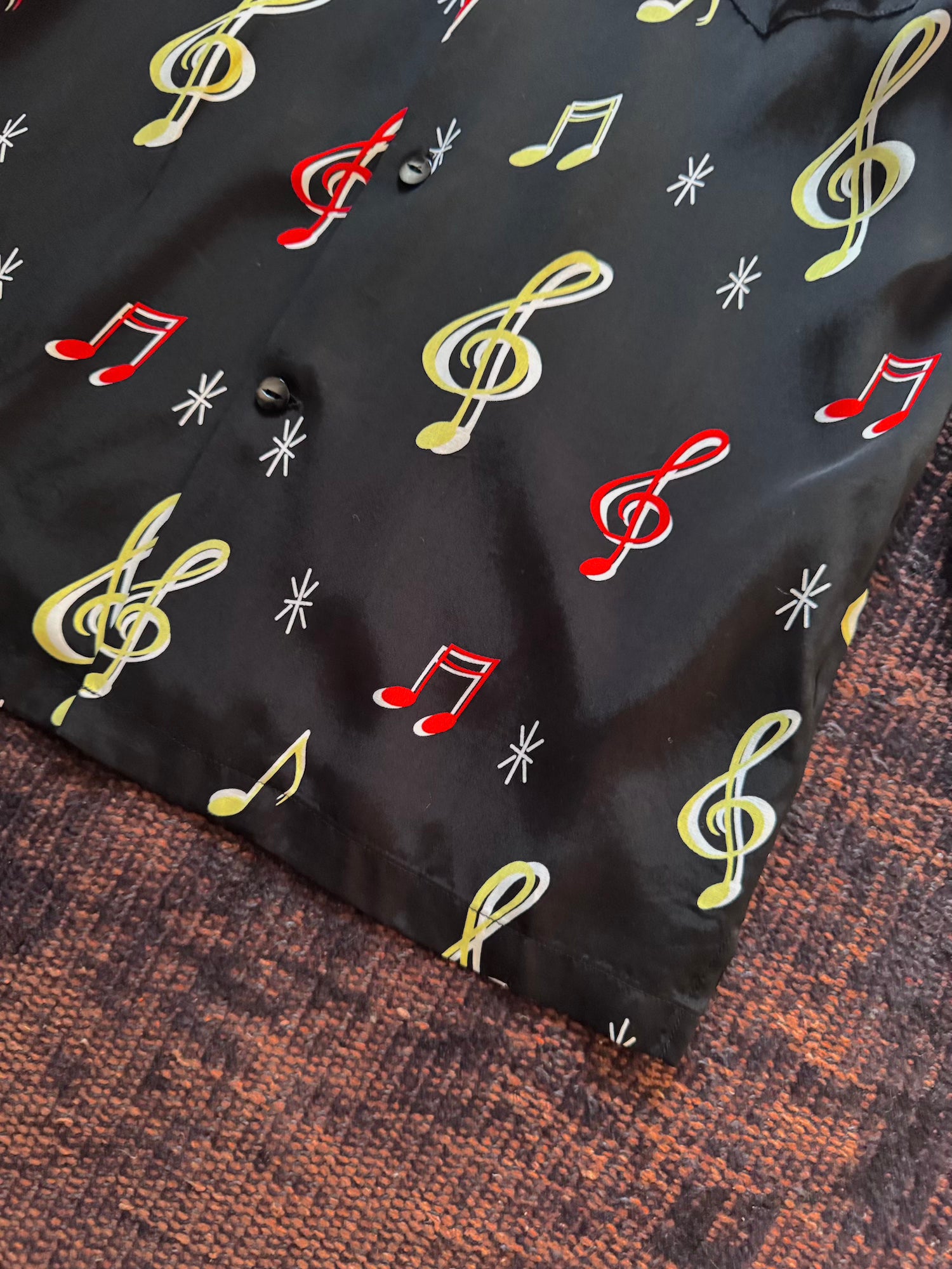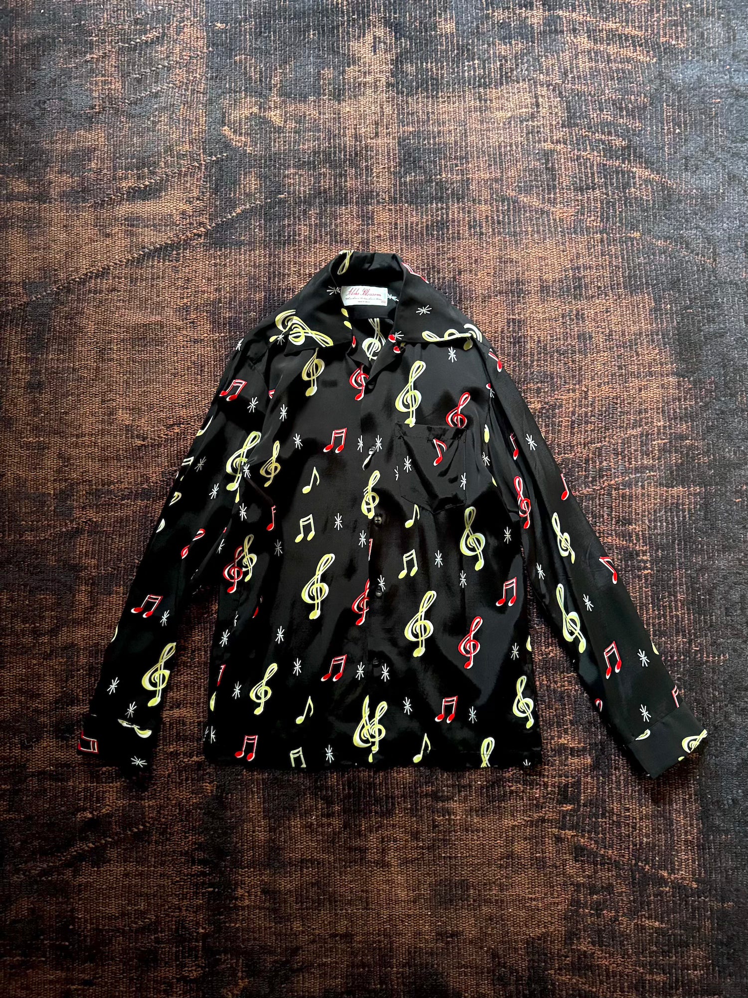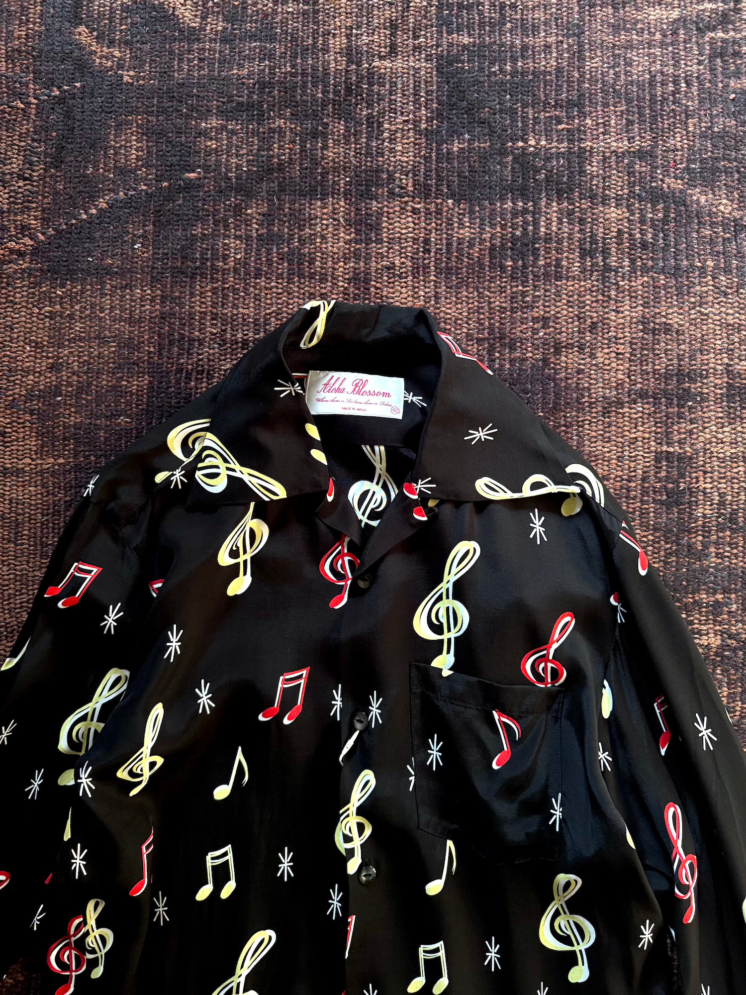 -音符柄のオリジナルファブリックを使用したハワイアンシャツ"SOUNDS GOOD"