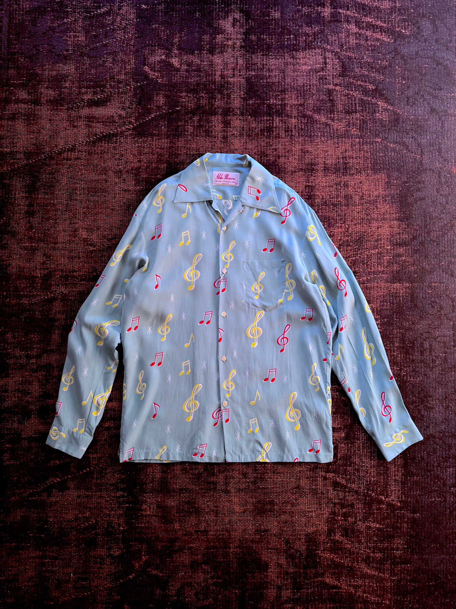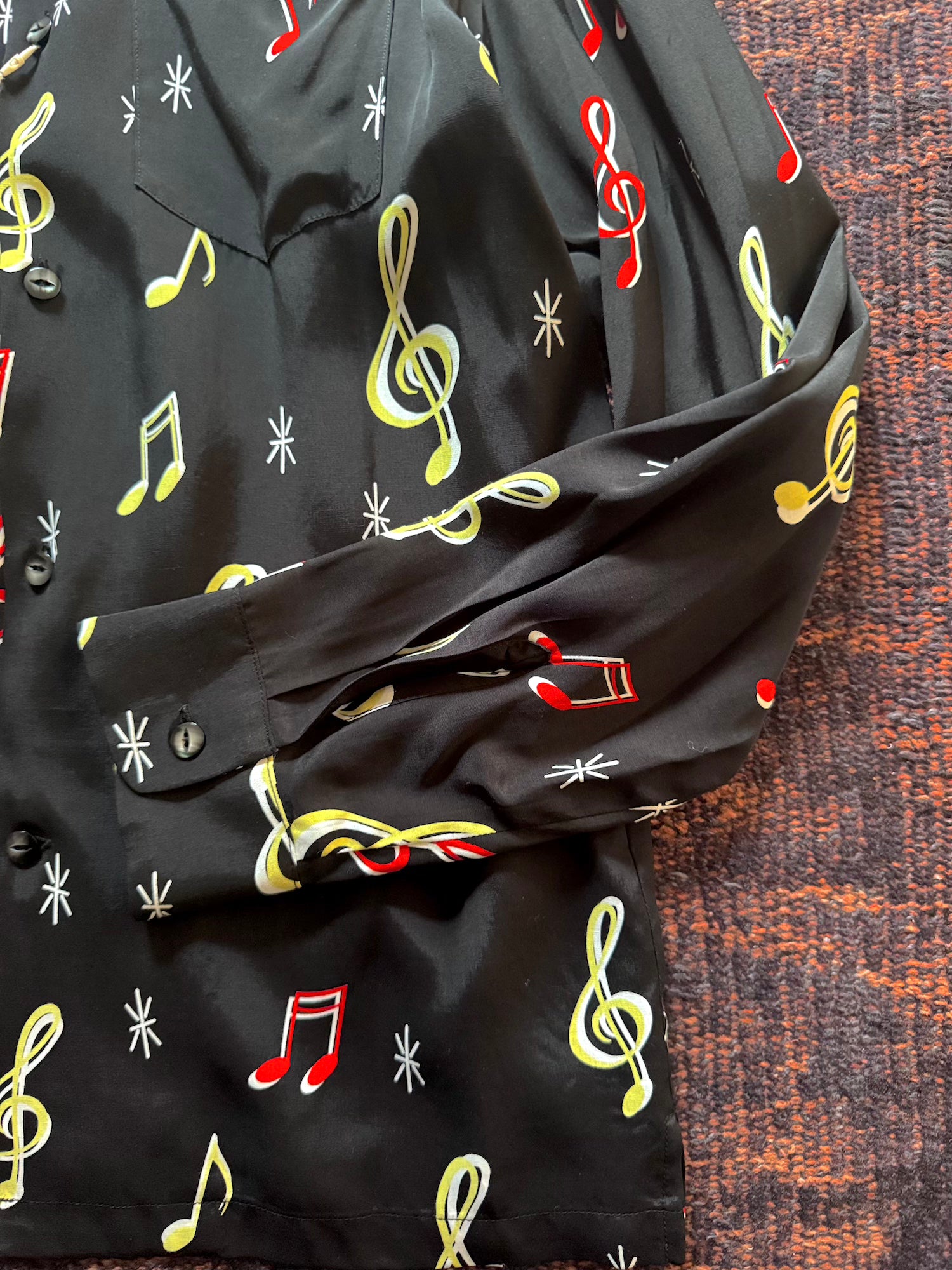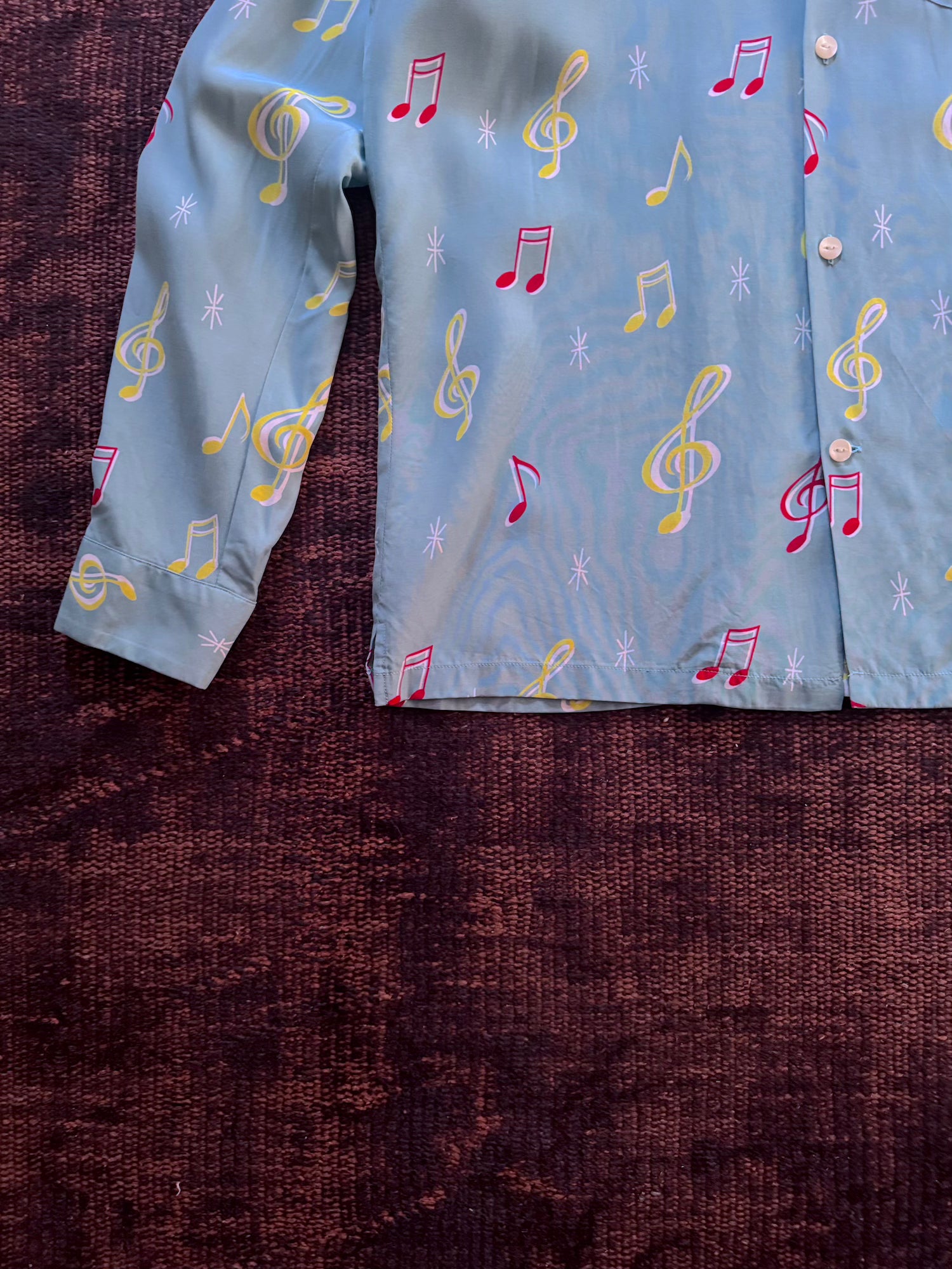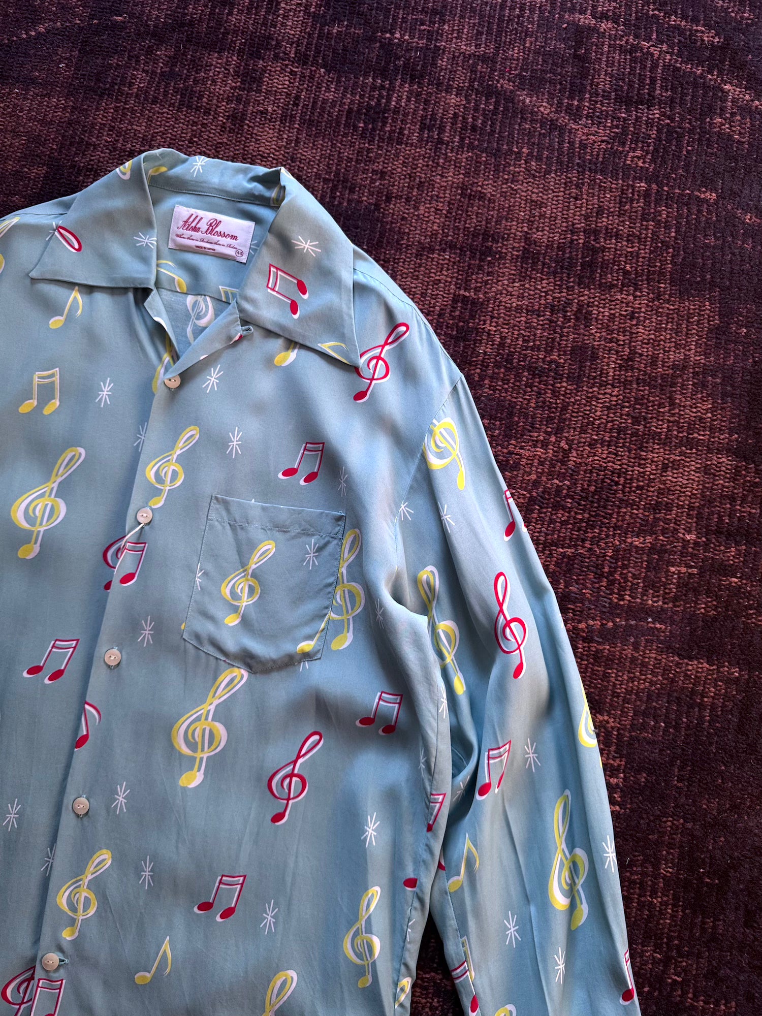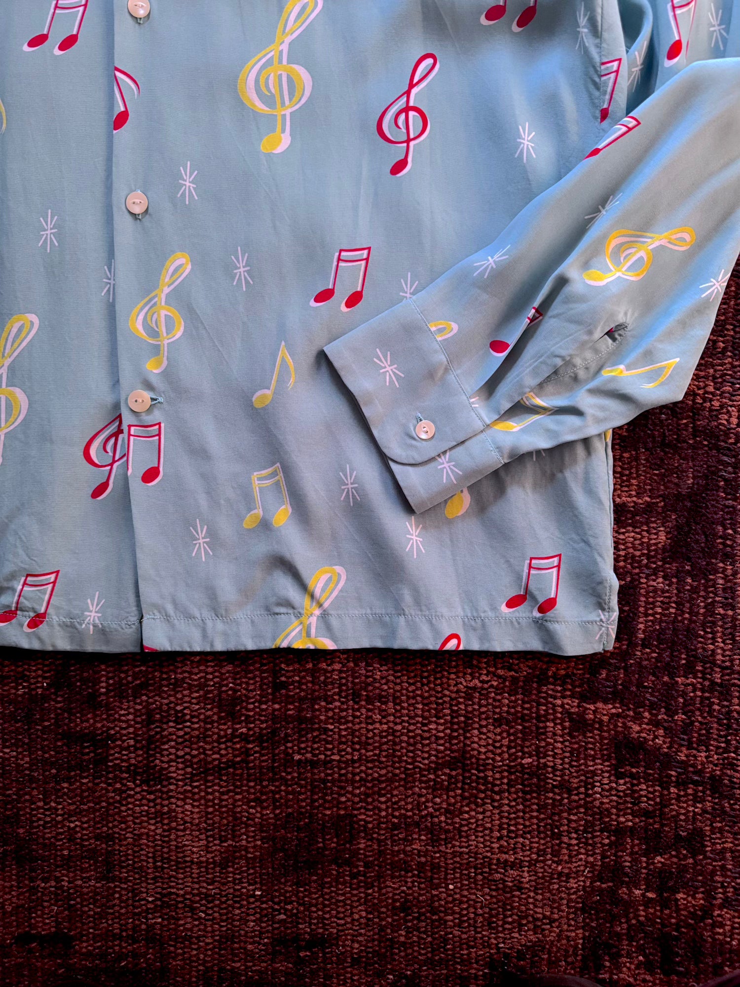 -音符柄のオリジナルファブリックを使用したハワイアンシャツ"SOUNDS GOOD"