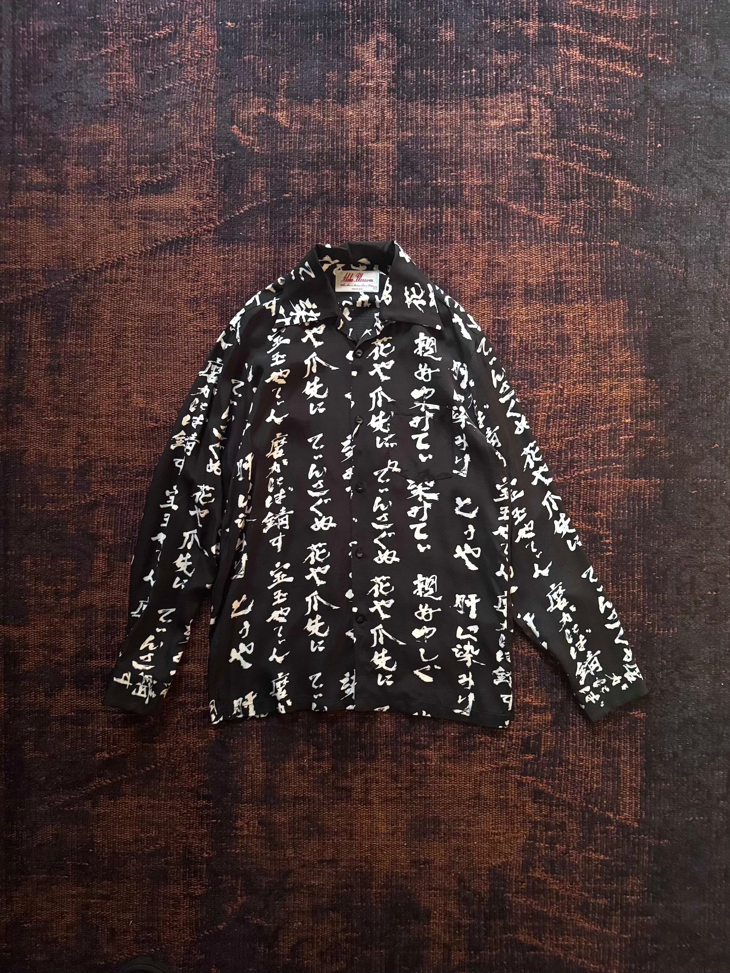 -長袖、レーヨン素材、スクエアカット、オープンカラー仕様。