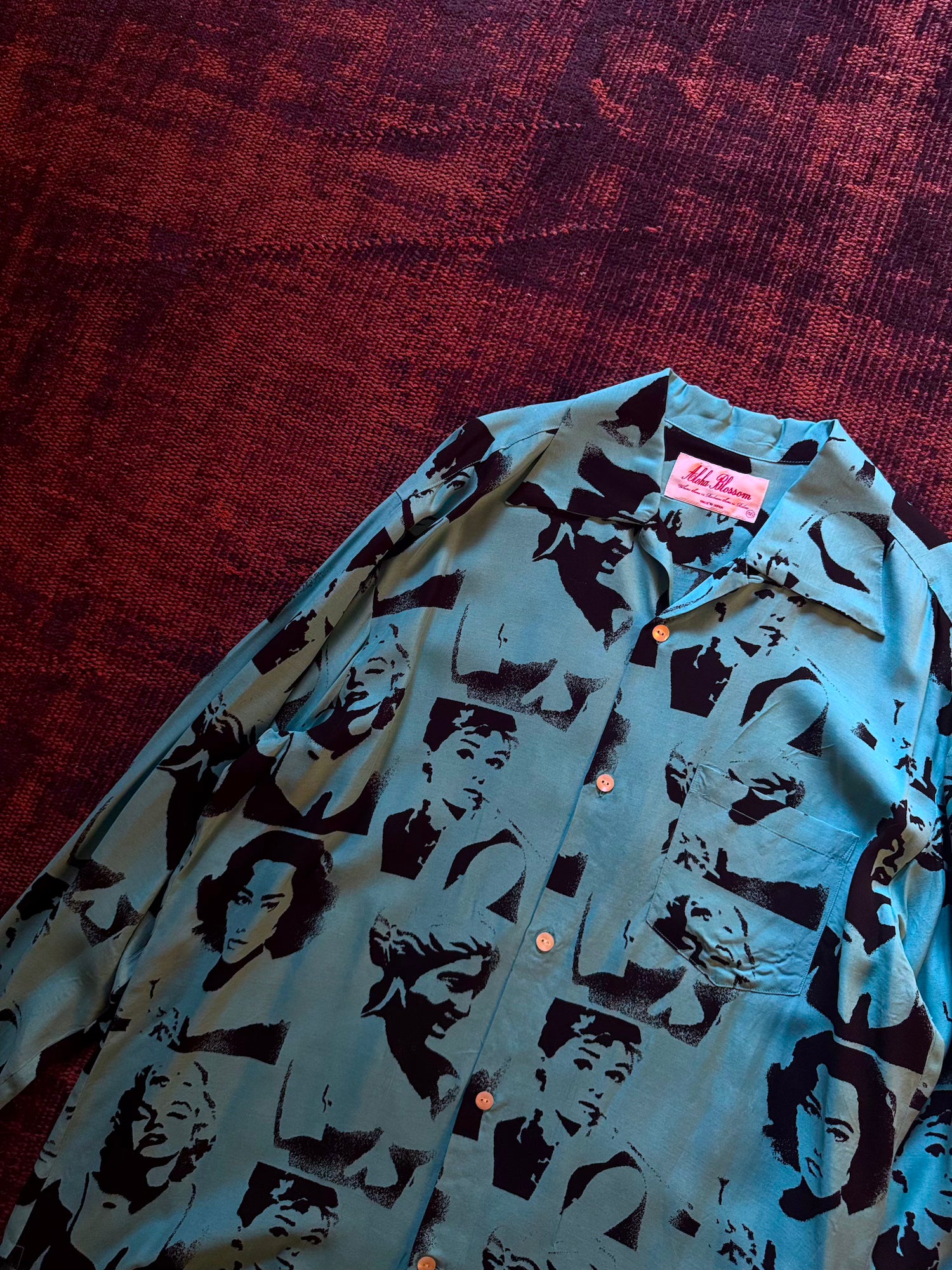 -VENUS(女神)ステンシルの総側を施したテキスタイルを使用したハワイアンシャツ "VENUS"