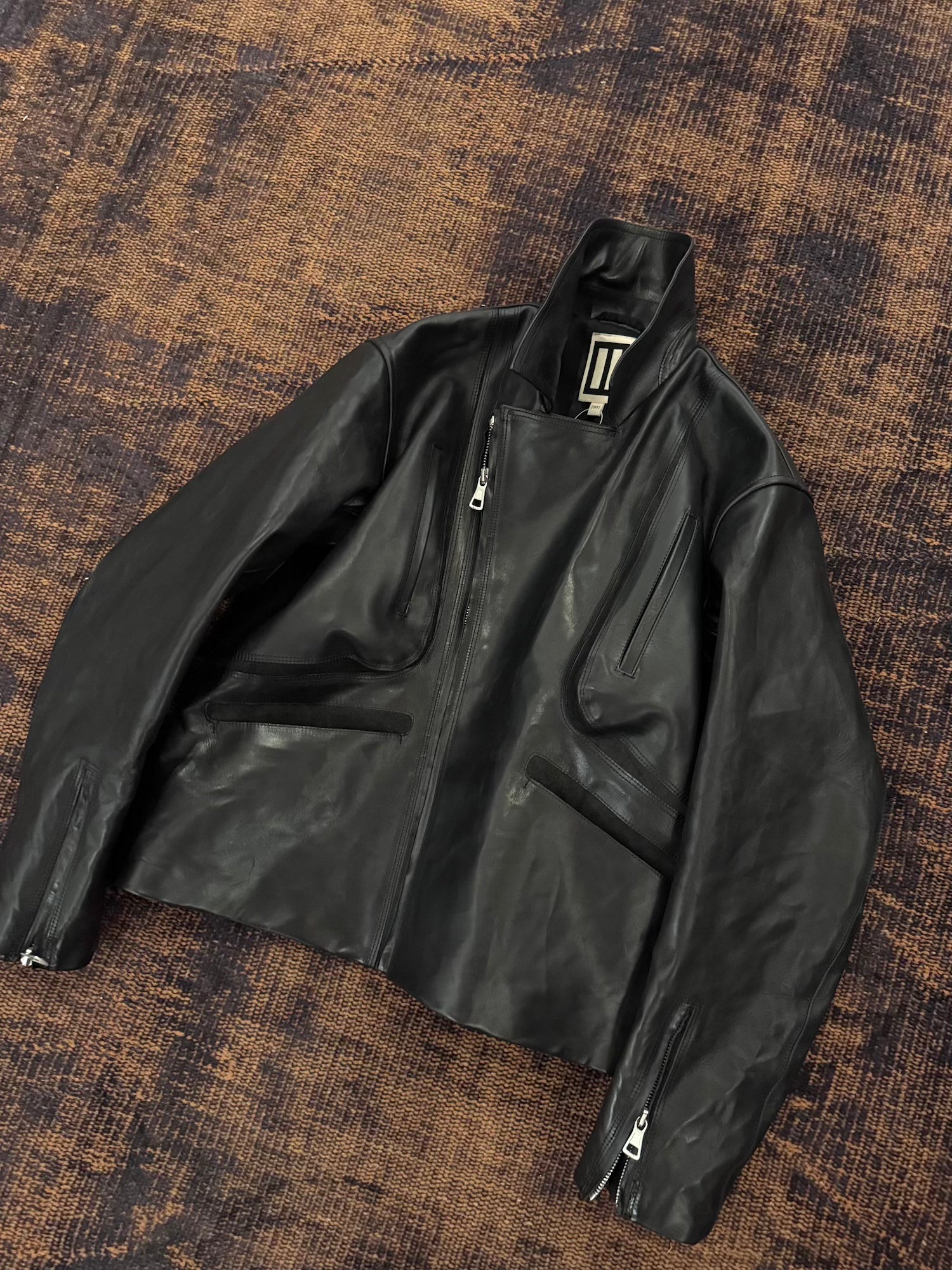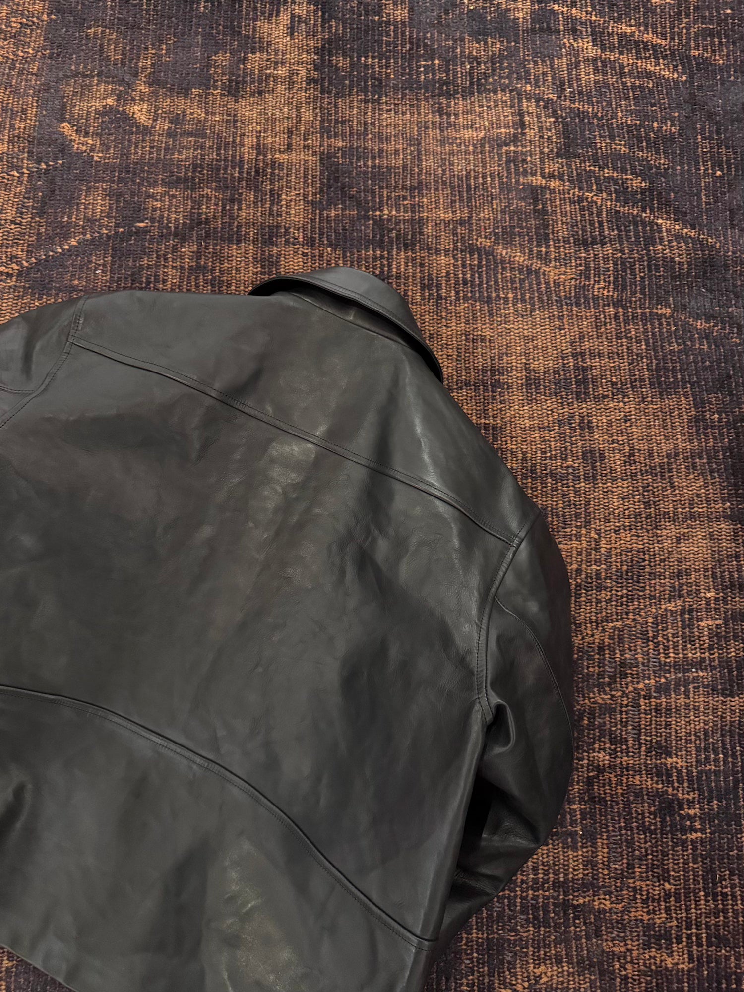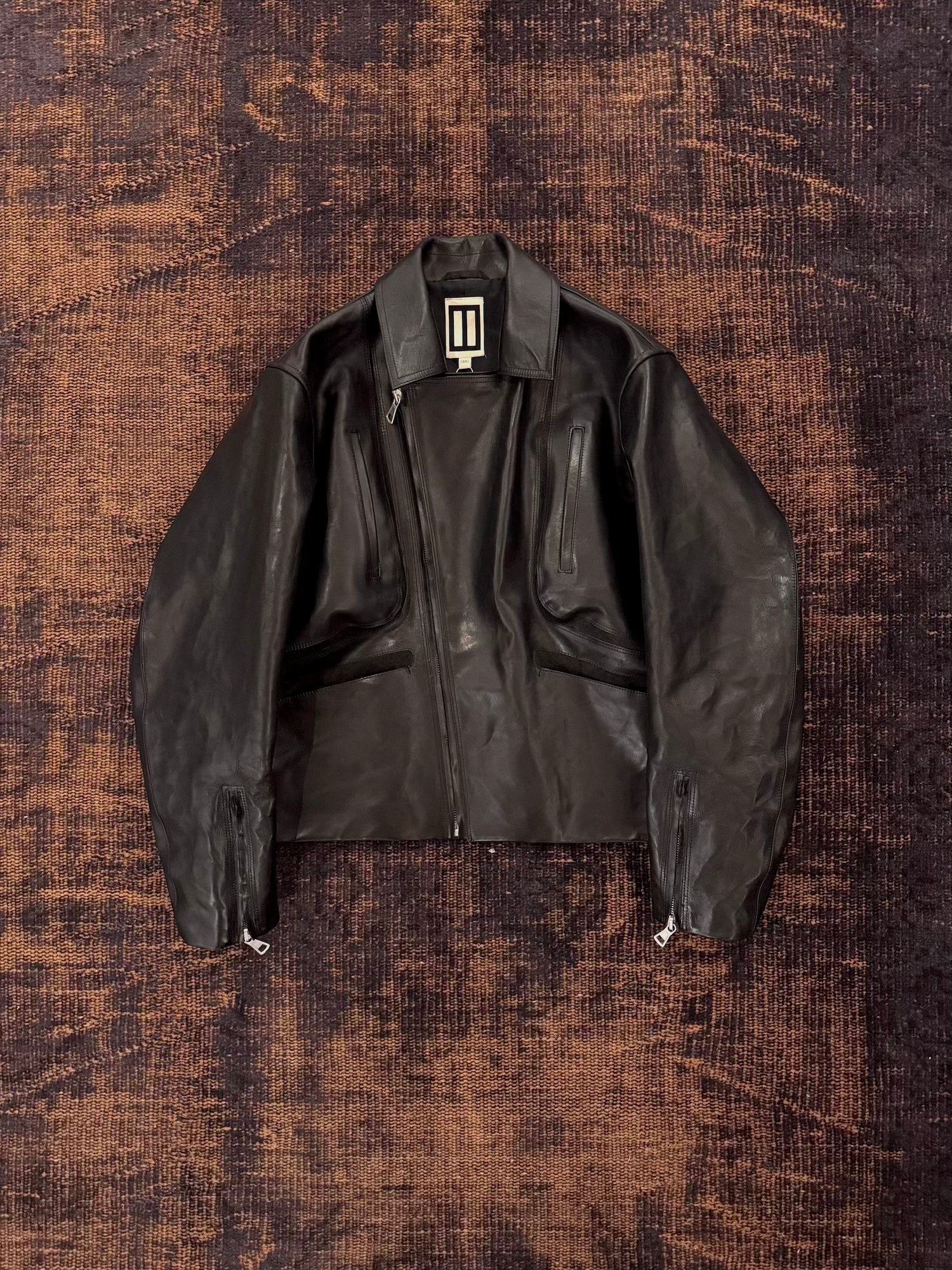 -特殊な染色加工を施したイタリア製カーフレザーをベジタブルタンニンなめしで仕上げたバイカージャケット。