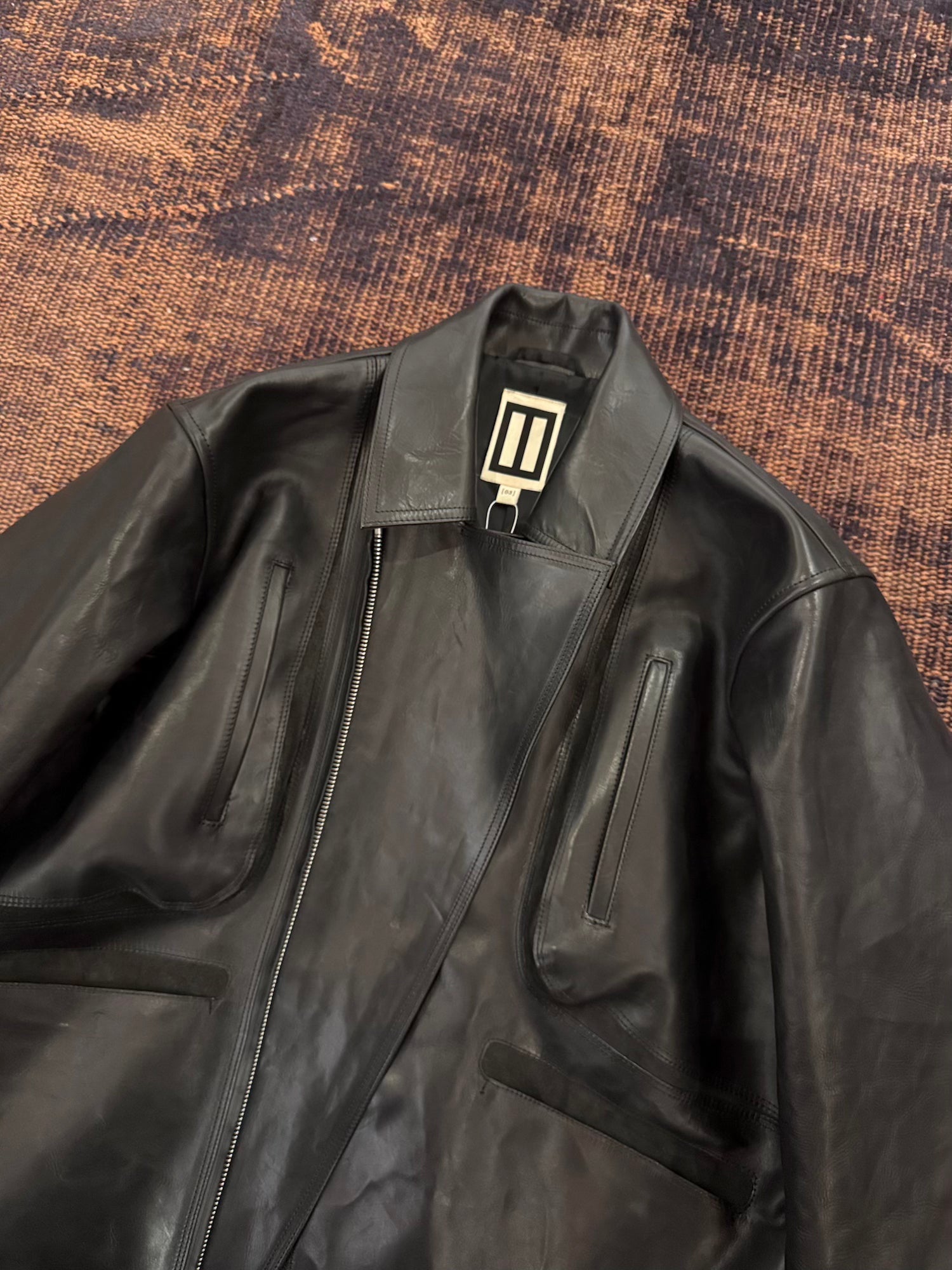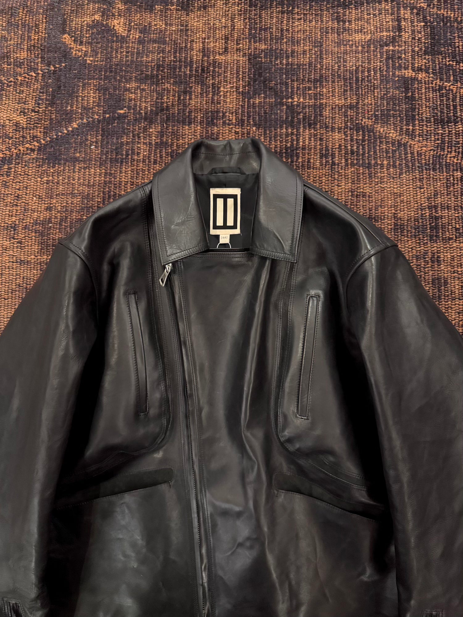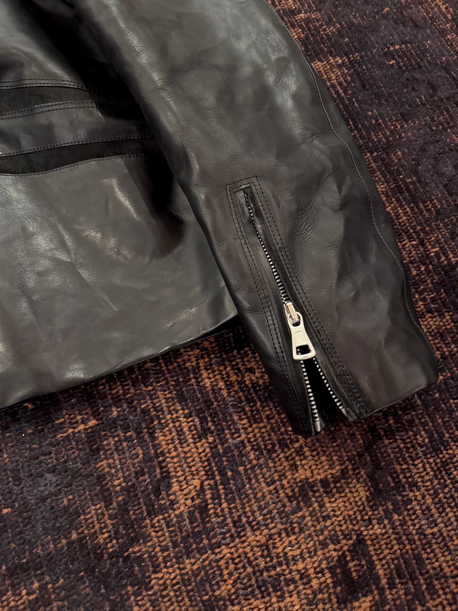 -特殊な染色加工を施したイタリア製カーフレザーをベジタブルタンニンなめしで仕上げたバイカージャケット。