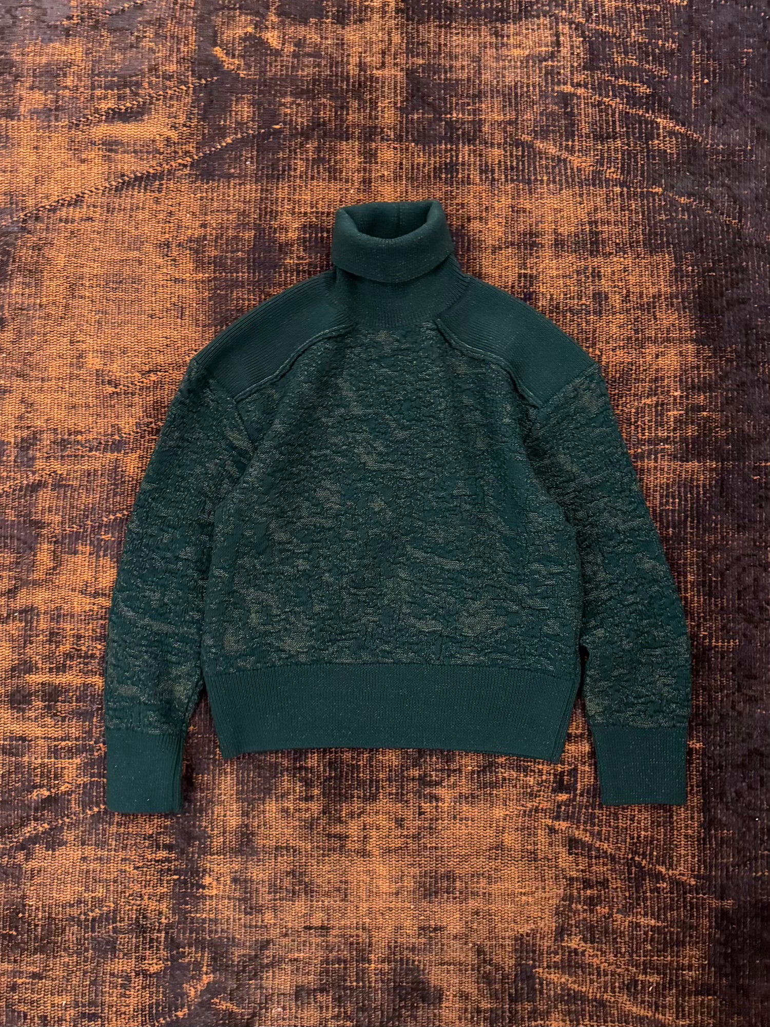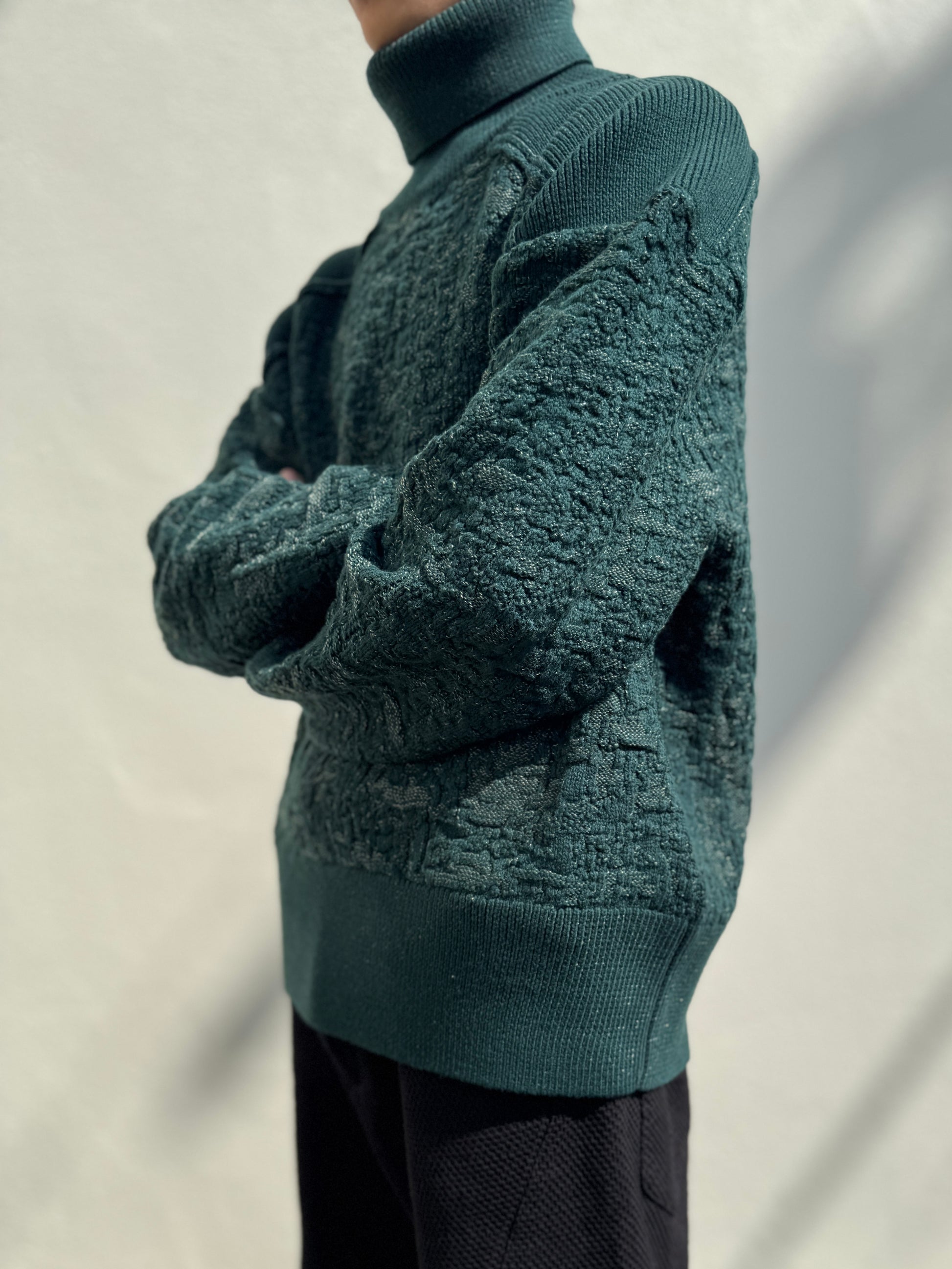 -アルル地方で放牧されたメリノ種のウールと透明糸を立体的に編み込み、凹凸のある表情が特徴的なコマンドセーター。今期のテーマ"syvash(腐海)"を象徴するアイテムの一つです。