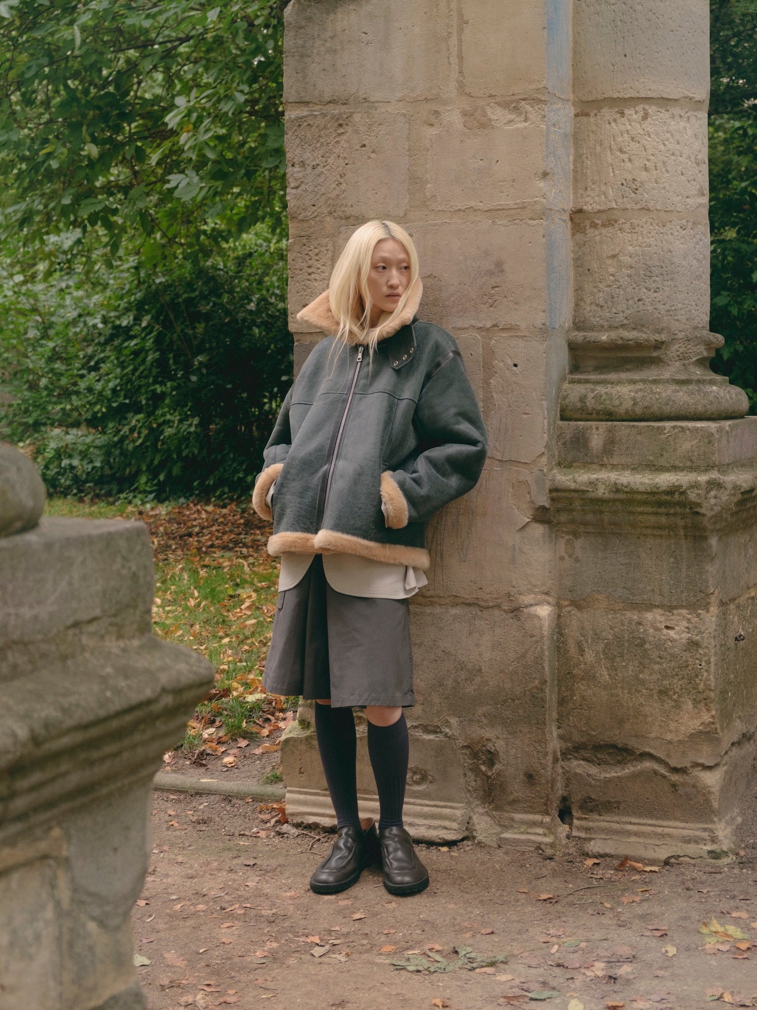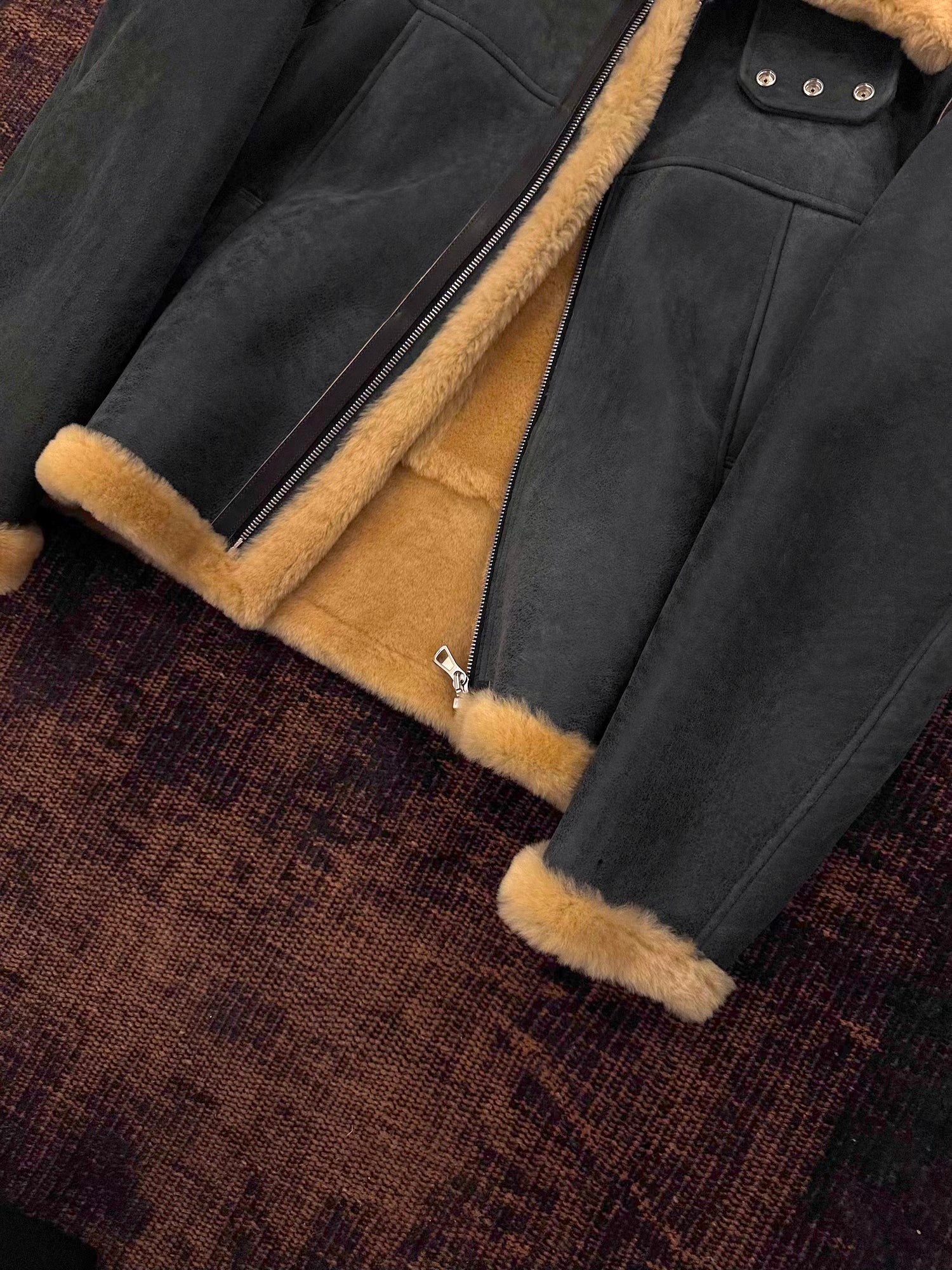 -Swiss RiriSwiss Ririファスナーを採用し、軽量で柔らかいフランス製ムートンを使用したジャケット。