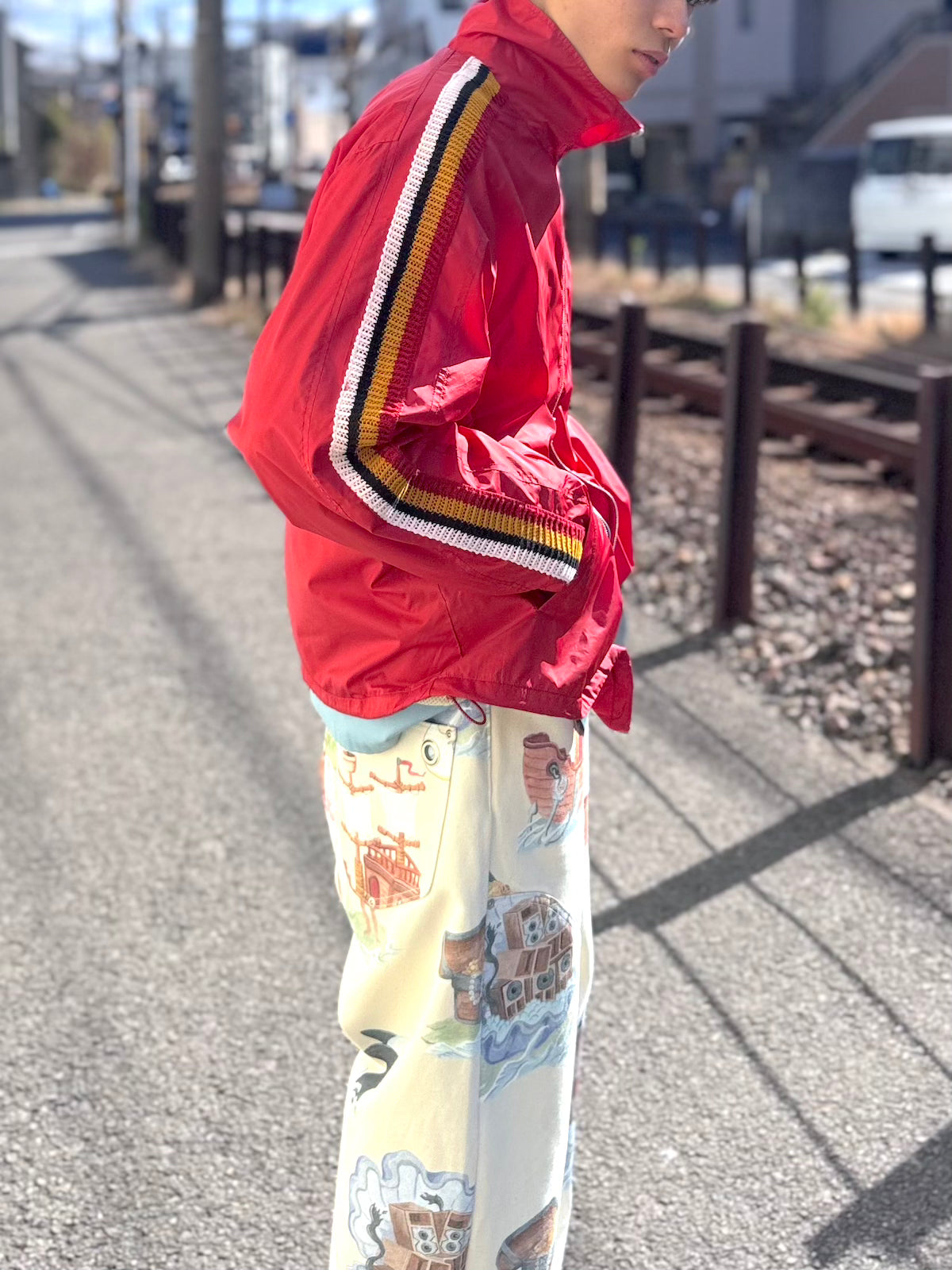 The DUFFER N NEPHEWSのアイコン的なアイテムとなるトラックシリーズ。80~90年代のウォームアップウエアから着想を得て、軽量なナイロン素材を用いることでなめらかな肌当たりと運動量が確保された丸みのあるシルエットが特徴。スピンドルによってサイズやシルエットの微調整も可能なため、幅広いスタイリングに落とし込むことができます。側章にはイギリスのサッカークラブから着想を得た配色をニットで配することで、ベーシックな中にもアクセントを持たせています。