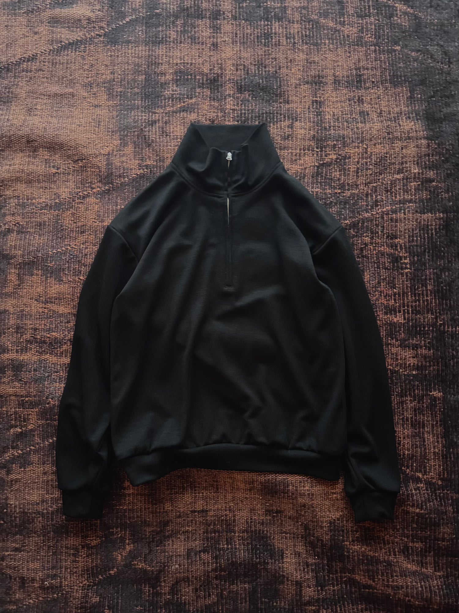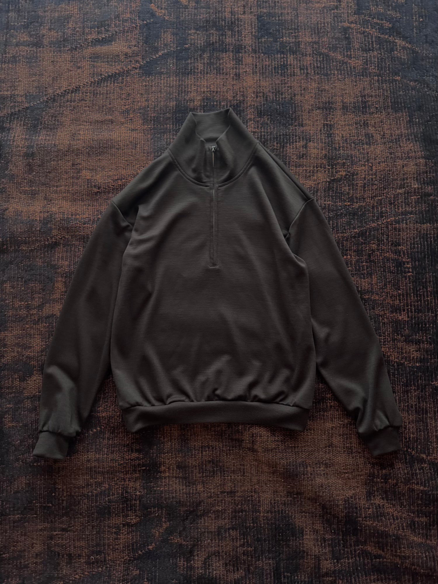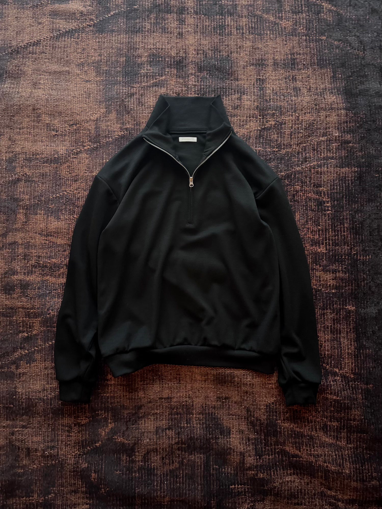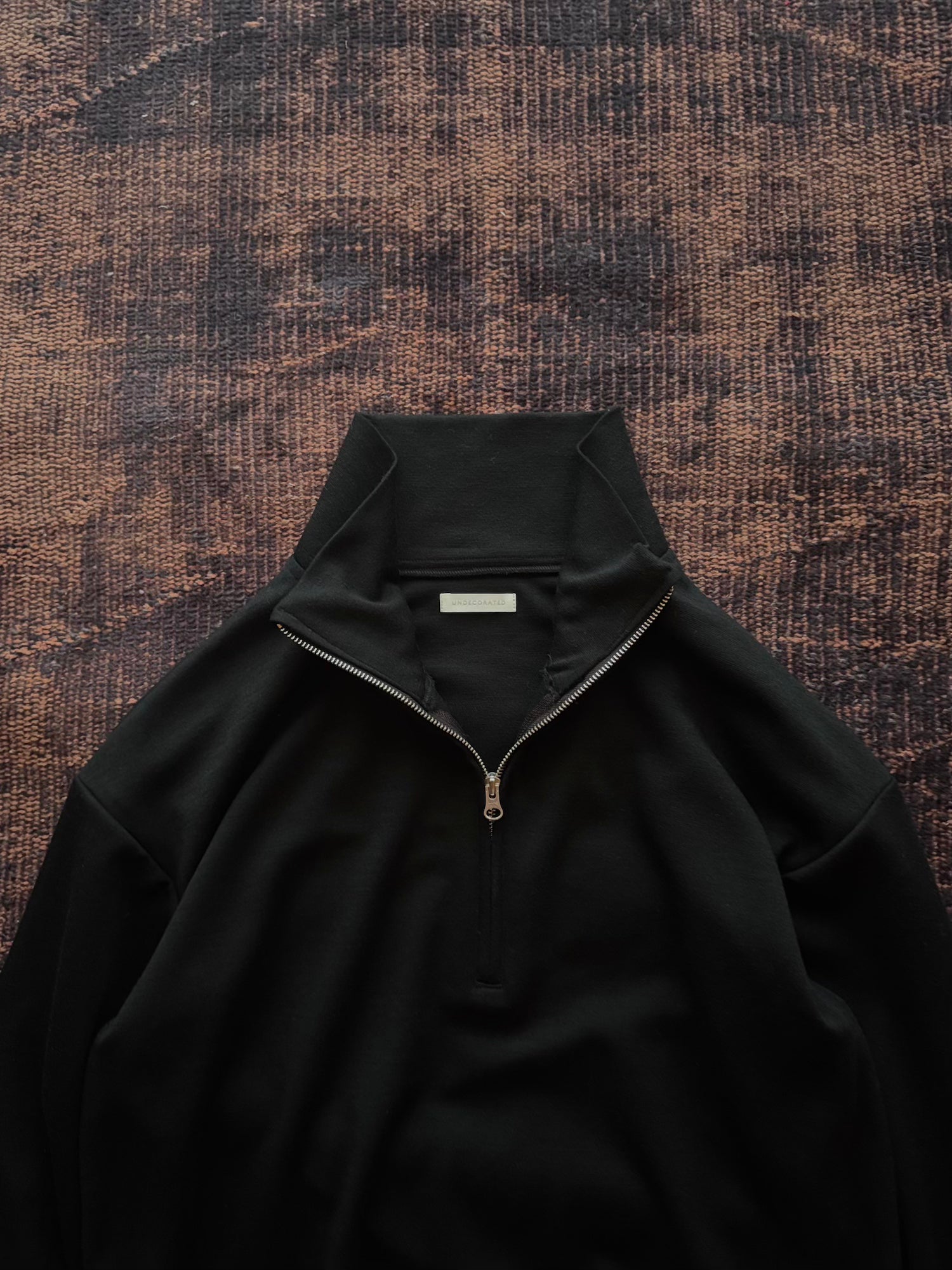 生地のキックバックを作るために、通常ポリエステルやナイロンを使用して作られるジャージー素材を、あえてウール100%で製作。オーストラリア産のメリノウールを原料に、極限までハイゲージで編み立てることで天然素材でもだれず、キックバックの強い素材に仕上げられています。また繊維が柔らかくチクチクしないので肌触りもとても良い風合いになっています。化繊で作るスポーティな印象が取り除かれ、UNDECORATEDらしい上品でモダンなジャージー素材の一着です。